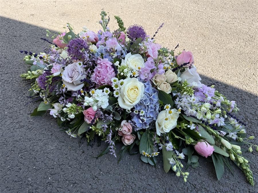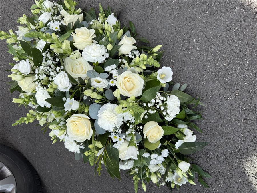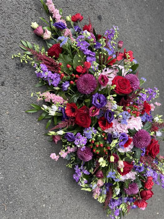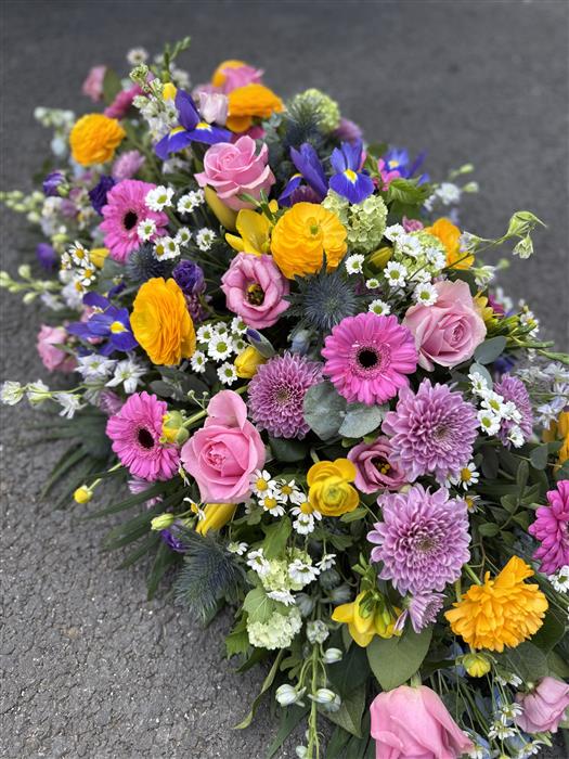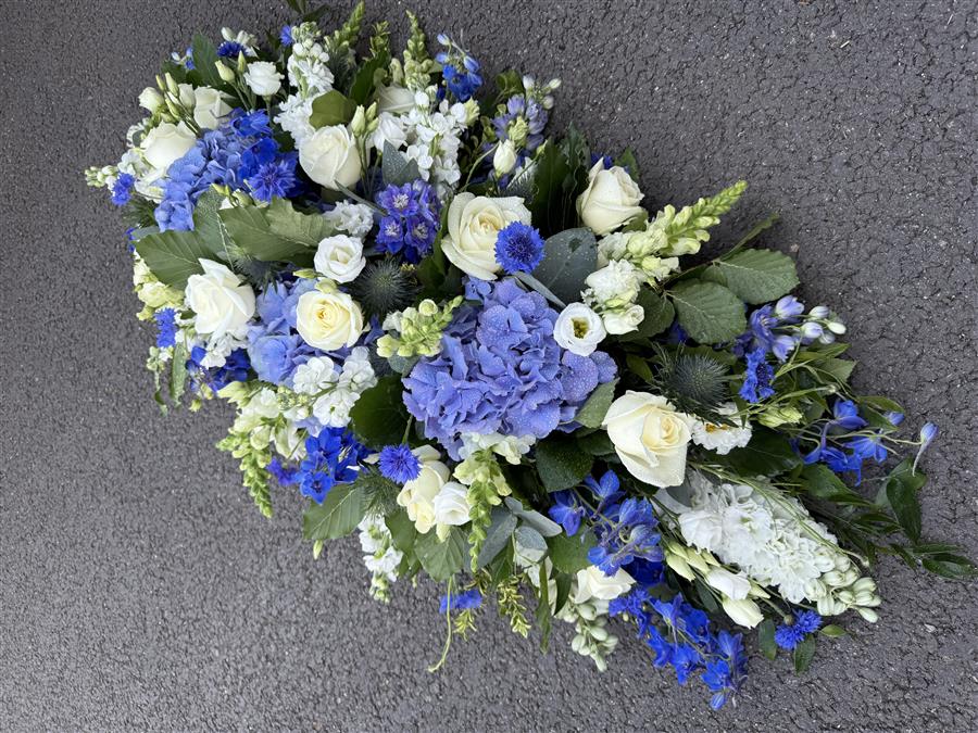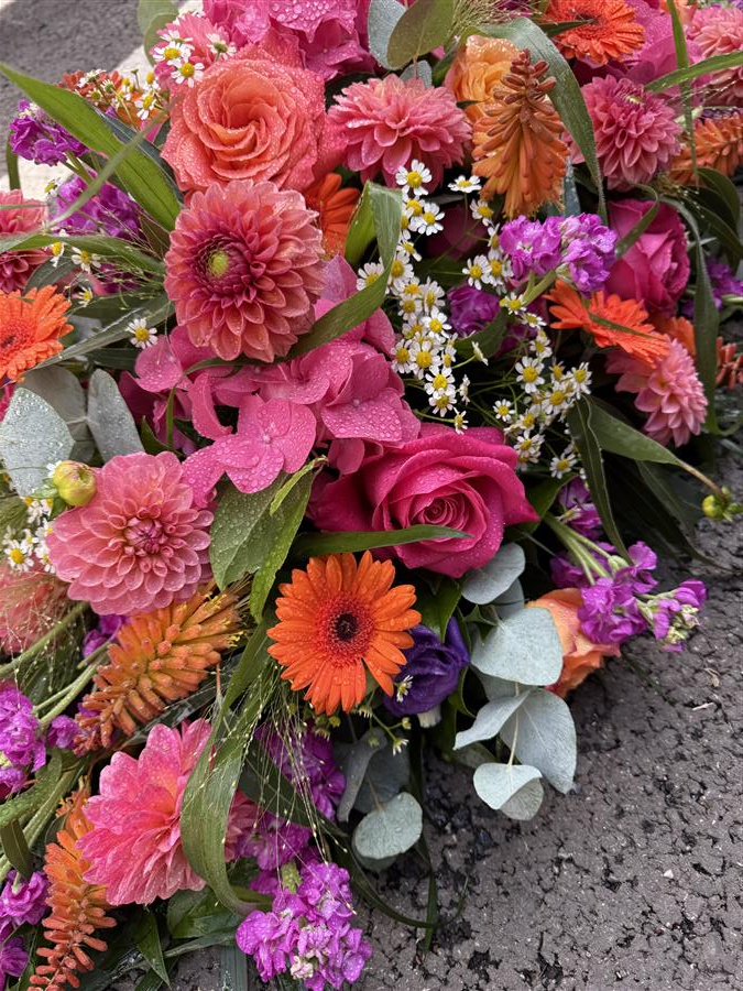 We take pride in our attention to detail, from the selection of flowers used to the beautiful balance of colour and texture used. We work closely with you and your family/friends listening to your thoughts and requests to capture the essence of your loved one with flowers. We take care of all of the logistics on the day or day before depending on when the funeral home require the tributes so you can rest easy knowing it will all be taken care of.