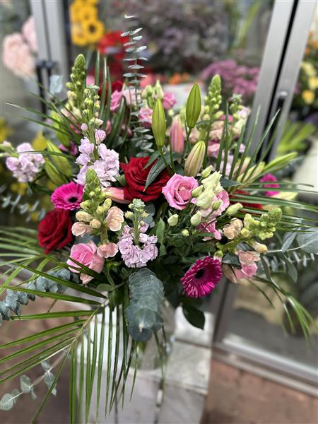 All the luxury flowers in this romantic vuluptuous vase arrangement hand made by our skilled florists.