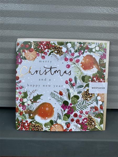 Merry Christmas and a Happy New Year, Whistlefish greetings card hand written by us.