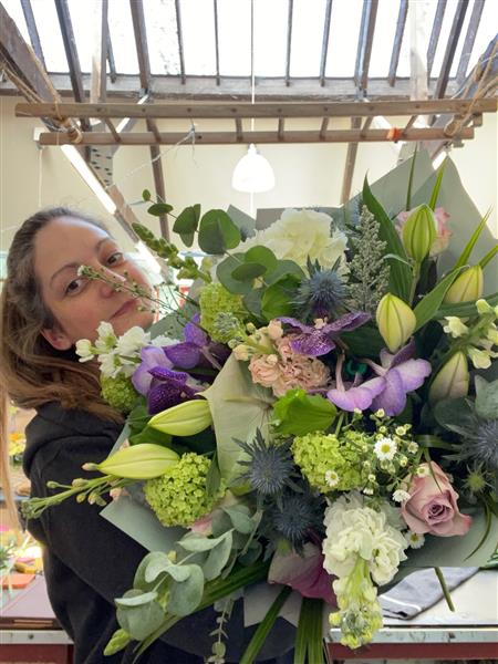 A show stopper of a bouquet, using the finest blooms we have in stock. This is a statement bouquet designed to wow the recipient and anyone else who sees it! Florist choice bouquet to have a gorgeous mix of luxury blooms with foliage to compliment.