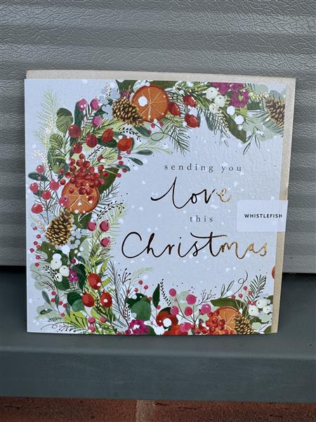 Sending you Love this Christmas card, Whistlefish greetings card hand written by us.
