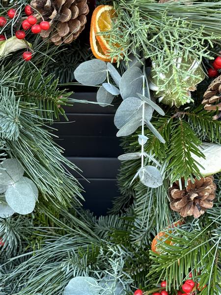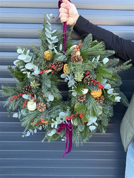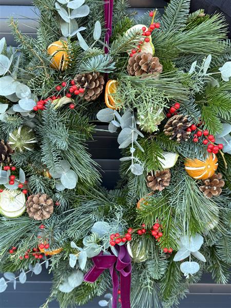 A one off! Send a luxury wreath featuring sumptuous berries and foliages, decorated with festive fruits and cones.